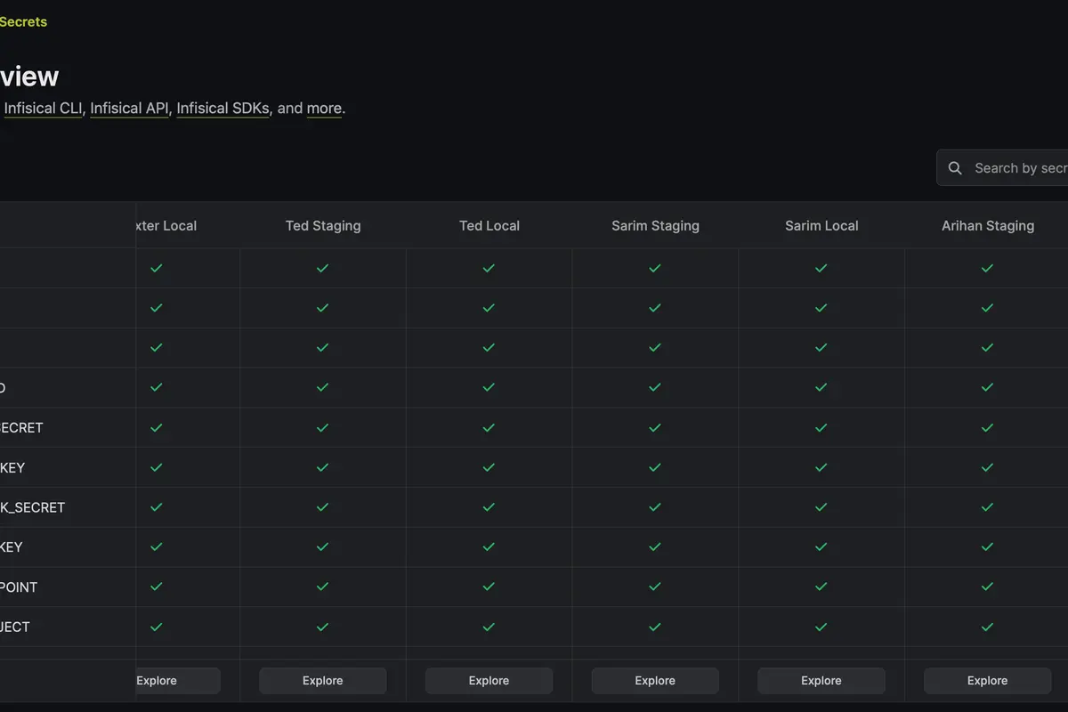 Infisical is the single source of truth for environment variables for local and staging envs.